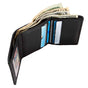 This slim RFID secure wallet protects against electronic pickpocketing and has 6 credit card slots plus a clear ID slot with thumb hole and a full-length billfold. The card slots face inward so there’s no need to worry about cards slipping out the top of your wallet unnoticed. These men’s RFID wallets are very thin and flexible for a comfortable fit in your pants pocket. The billfold area is also RFID shielded.